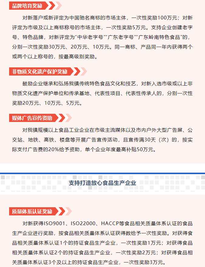 点击查看政策文件:道滘镇人民政府关于印发《道滘镇食品饮料产业集群试点培育专项资金管理办法》的通知